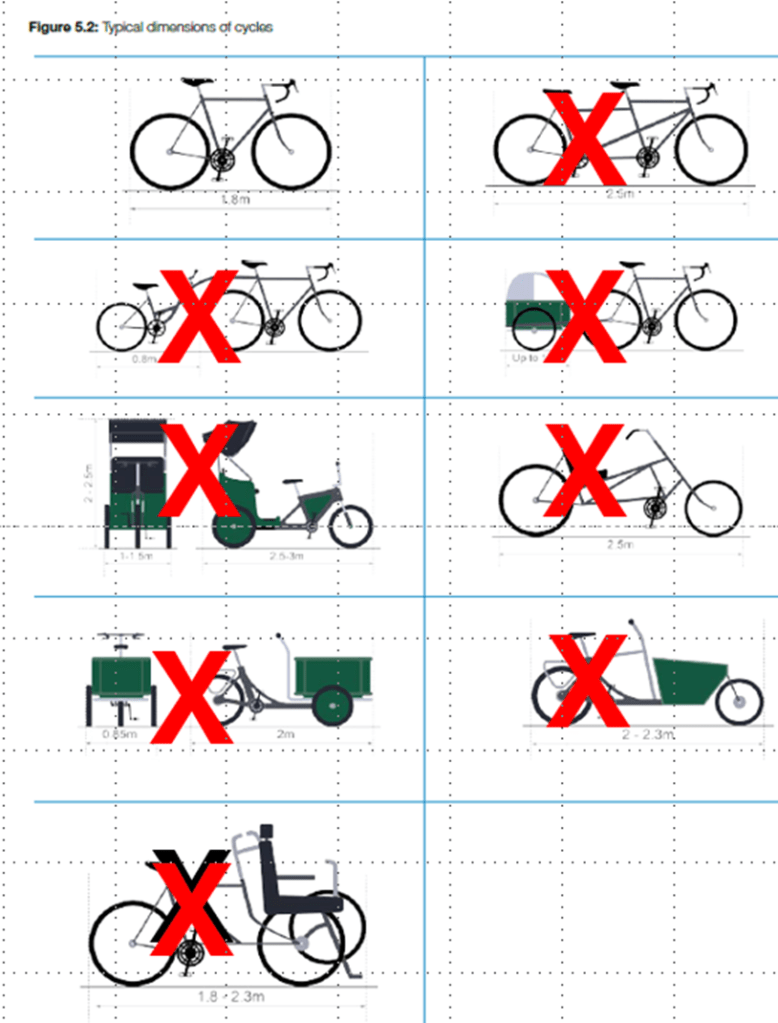 And here’s the list of the types of bicycle that, now, can and cannot get through the park gates. Note that, in a quest for full exclusivity, whilst pretending otherwise, only standard bikes without panniers can pass through – if you’ve got panniers on your road bike, you’re going to need to take them off..