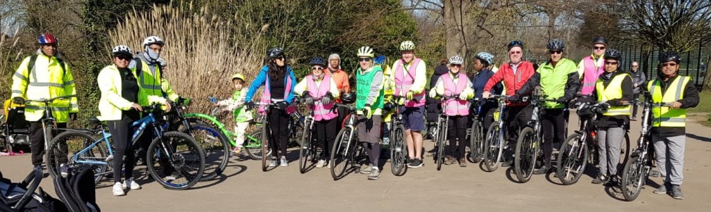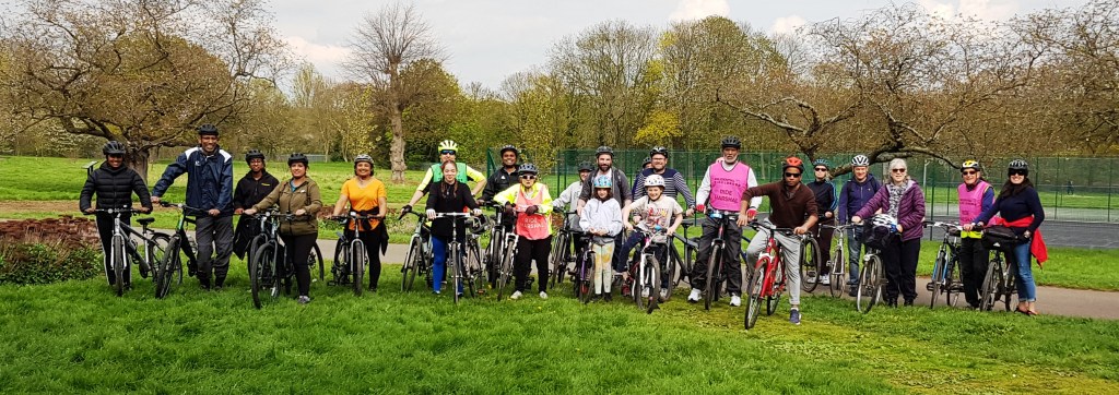 The weather was predicted to be wet……. And it was! 31 friendly and happy riders braved the cold and wet to explore 5 Redbridge parks. With a little talk in each park from Tajinder, the conservation, wildlife and biodiversiry officer for Vision, across all the parks in Redbridge. Riders joined us in each park and one can only admire their determination to enjoy the ride. We are keen to attract more riders from the south of the borough so if you have any ideas of how we might do this, please get in touch.