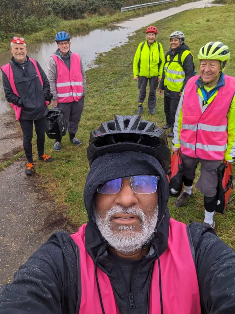 On a drizzly day, 6 riders set off from Shenfield for a 30-mile circular ride around the lanes of Essex. Several riders had cancelled, put off by the weather. Those who took part had a great day and thoroughly enjoyed the route planned and led by Nic. Our challenge was the amount of surface water. At times we felt we were cycling along a river. Thanks to those who braved the ride and let’s hope for sunnier weather on our next rides.