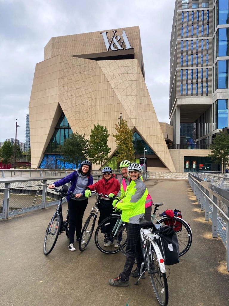 With heavy rain and stormy weather forecast. 4 adventurous riders cycled to the Olympic Park and explored the Velodrome, woodland and waterway areas, the new cultural development of the V&A, University of the Arts, Sadlers Wells and BBC. Then along to the Olympic Pool, Mittel Orbit, London Stadium and finally the Copper Box arena. We had a great opportunity for conversation over lunch at the View Tube café on The Greenway before heading back, assisted by a following wind. It was damp but did not rain. The four of us enjoyed a leisurely, dry and sociable ride.