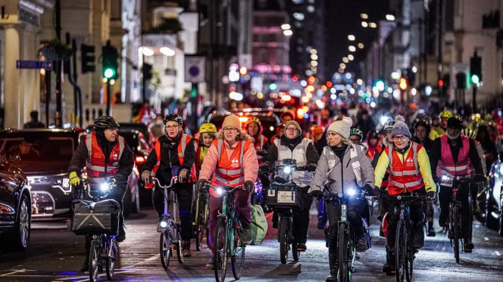 On a cold Thursday February evening, 5 of us rode together to Hyde Park. We joined well over 100 other riders on the LCC and women’s network campaign ride to improve cycle routes after dark. Whilst there was a festival feel to the ride through West London, the message was a serious one. Many women stop cycling in the winter as they feel unsafe on many TfL routes after dark. Read the LCC report on this issue. You can download the whole report from https://lcc.org.uk/news/womens-freedom-after-dark/