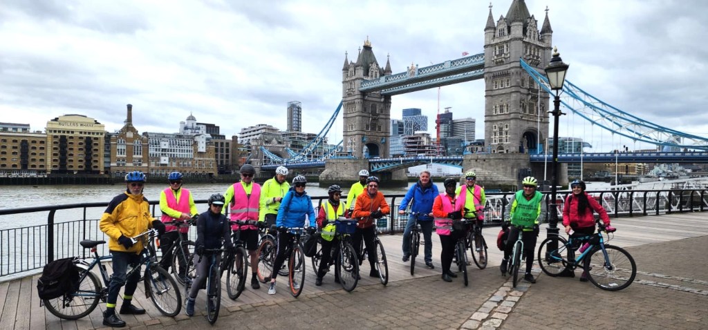 We had a lunch stop in Greenwich and then rode on to cross over Tower Bridge, along the north bank, through Mile End Park, Valentines Park and the Olympic Park. A few minor problems with bikes were dealt with and everyone is now home and relaxing after a 30 mile adventure. I am delighted to report we had riders with heritages from India, Greece, Cyprus, Italy, Germany, Ireland, Wales and England! London is such a delightful mix of people and cultures. Thanks to all those who took part and especially to the marshals.